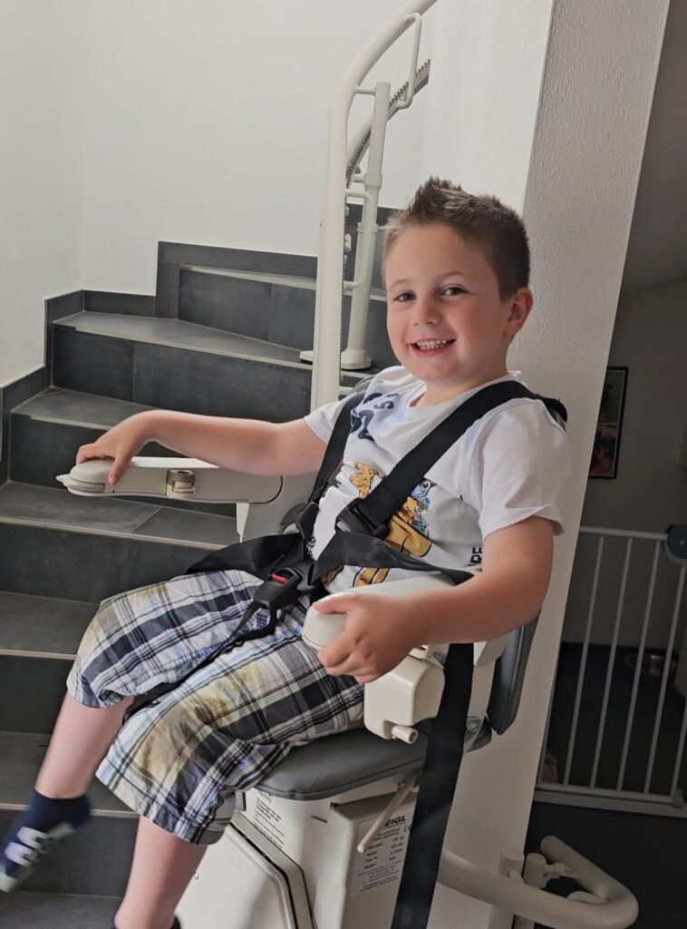 Die Spendenübergabe an Luis fand im neu gebauten Haus der Familie in Kolsass statt. Die Unterinntaler Weihnachtsbläser überraschten den fünfjährigen Luis mit einem Musikstück der Benefiz CD, der davon ganz begeistert war und vor Freude mit klatschte. Trotz seiner Erkrankung ist er ein fröhlicher Bub. Er bekommt viel Unterstützung von seiner älteren Schwester. Um den Alltag zu erleichtern, musste die Familie einige Maßnahmen ergreifen. Ein Teil der Spendengeldern wurde in den Ausbau des Hauses investiert. Es wurde rollstuhlgerecht und barrierefrei eingerichtet und ein behindertengerechter Treppenlift in das Obergeschoß eingebaut. Luis ist ganz begeistert von seinem neuen Lift und fährt mit Freude oft auf- und ab. Des Weiteren wurde das Geld in Hilfsmittel für Luis investiert, die nicht von der Krankenkasse bezahlt werden.